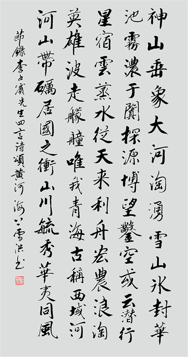 古人云“书画唯风韵难及”。凡艺,气韵生动为首要。赵雪洪先生擅行书,师法二王一脉,溯流而上,沿波探源,重气息,重立意,纵心而不逾矩。他十分重视临帖,在深刻了解古文化背景、文字符号与审美基因对自己产生的感应与共鸣后,思索如何运用当代笔墨精神与技法去展现其心中之感。因此赵雪洪作行书,尤重笔法墨法,或中实逆入,或裹锋落笔,或提锋涩进,曲直合度,转折以求圆融,又疾涩得当,血脉通畅,无平滑描绣之态。