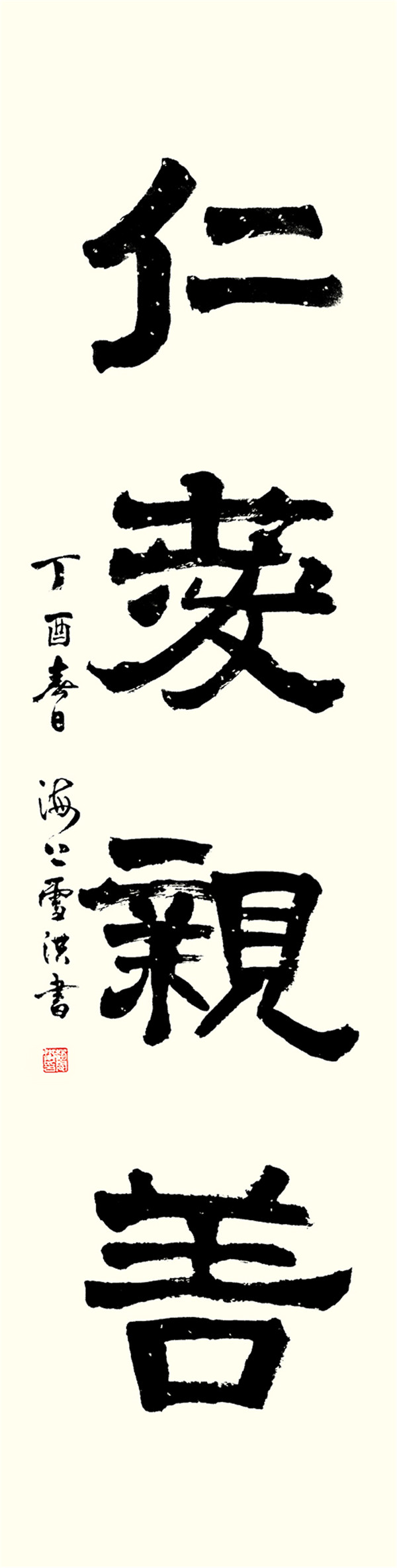 赵雪洪书作用笔尤重取势。他往往把握结字之参差、大小、顺逆、起伏、燥润、浓淡、疏密、向背、疾徐、轻重,聚散和书势欹正之变化,因体趋势,自出机杼。因此其笔下往往流淌着隽逸、稚拙与苍浑的气息。值得注意的是,赵雪洪在坚守传统的基础上勇于通变,适应当代生活的审美转型,注入自我的艺术语言元素,巧中寓拙,含蓄多变,古朴不失率意,变化不失法度,其笔墨变化充分显现出洒脱的意态与内涵。